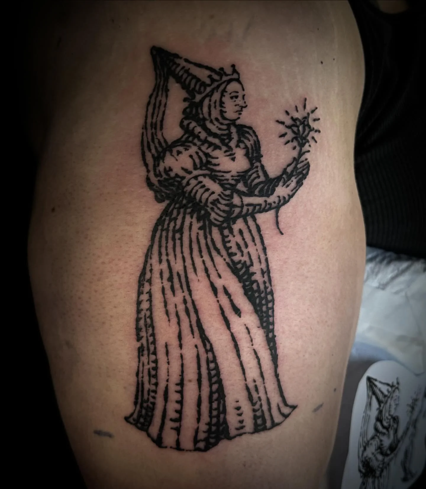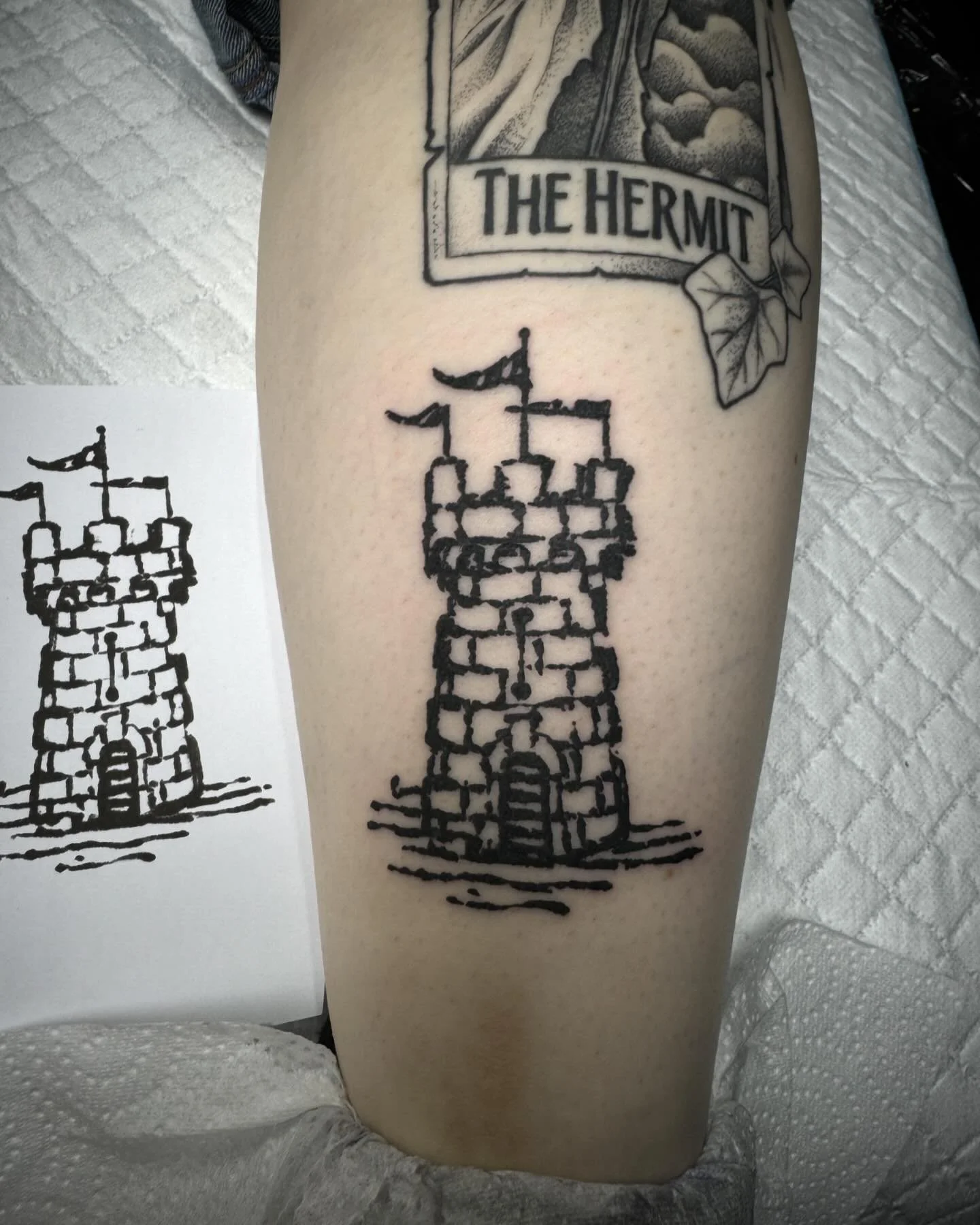 " As you can see everyone is writing very good comments about Matt... And I want to join them too. I live in Manchester, but it worth a small journey to get the tattoo. I saw a guy in Manchester with a very interesting style on his arm and I asked him where did he get the ink... He gave me Matt's Instagram and I knew that the tarot card I was going to get had to have that specific style Had my tattoo yesterday and I love the unique style, the cleaning, the friendliness and the experience!"